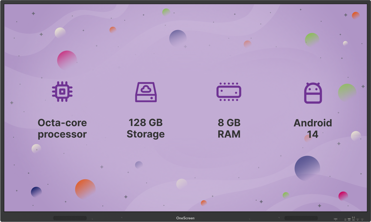La OneScreen Core es una pantalla interactiva o “smartboard” táctil diseñada para aulas y espacios colaborativos, que combina características intuitivas con potencia y herramientas educativas integradas.